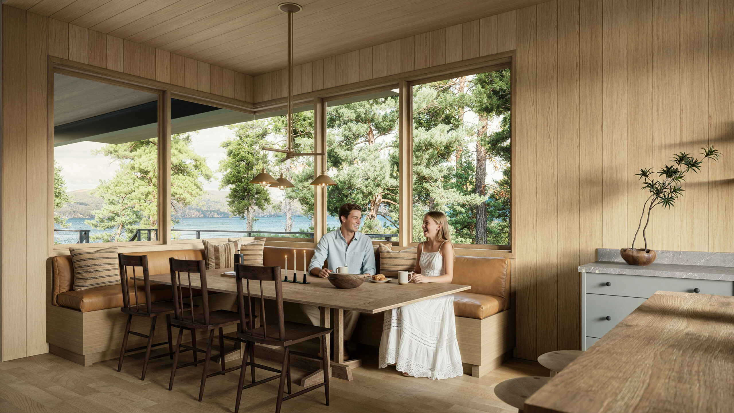 Lakeside architecture carries a quiet presence—a balance of texture, light, and calm. Through our visuals, we sought to translate this atmosphere into a tangible feeling.