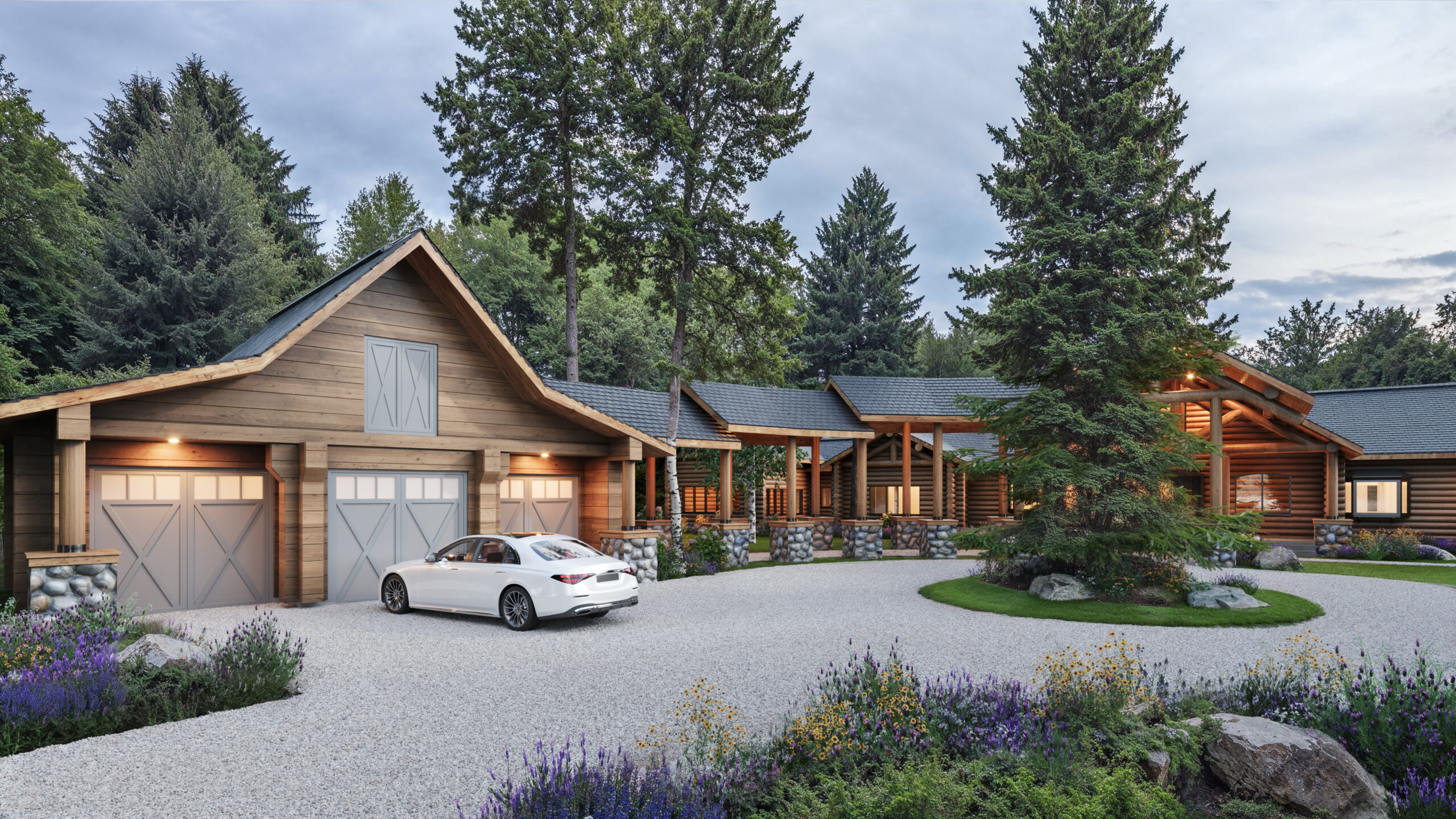 Where rustic character meets modern craftsmanship, this Wyoming retreat is expressed through refined, photorealistic visualization. Framed by lush landscapes and carefully curated outdoor spaces, the home embodies warmth, calm, and quiet luxury—crafted as a sanctuary in balance with its environment.
